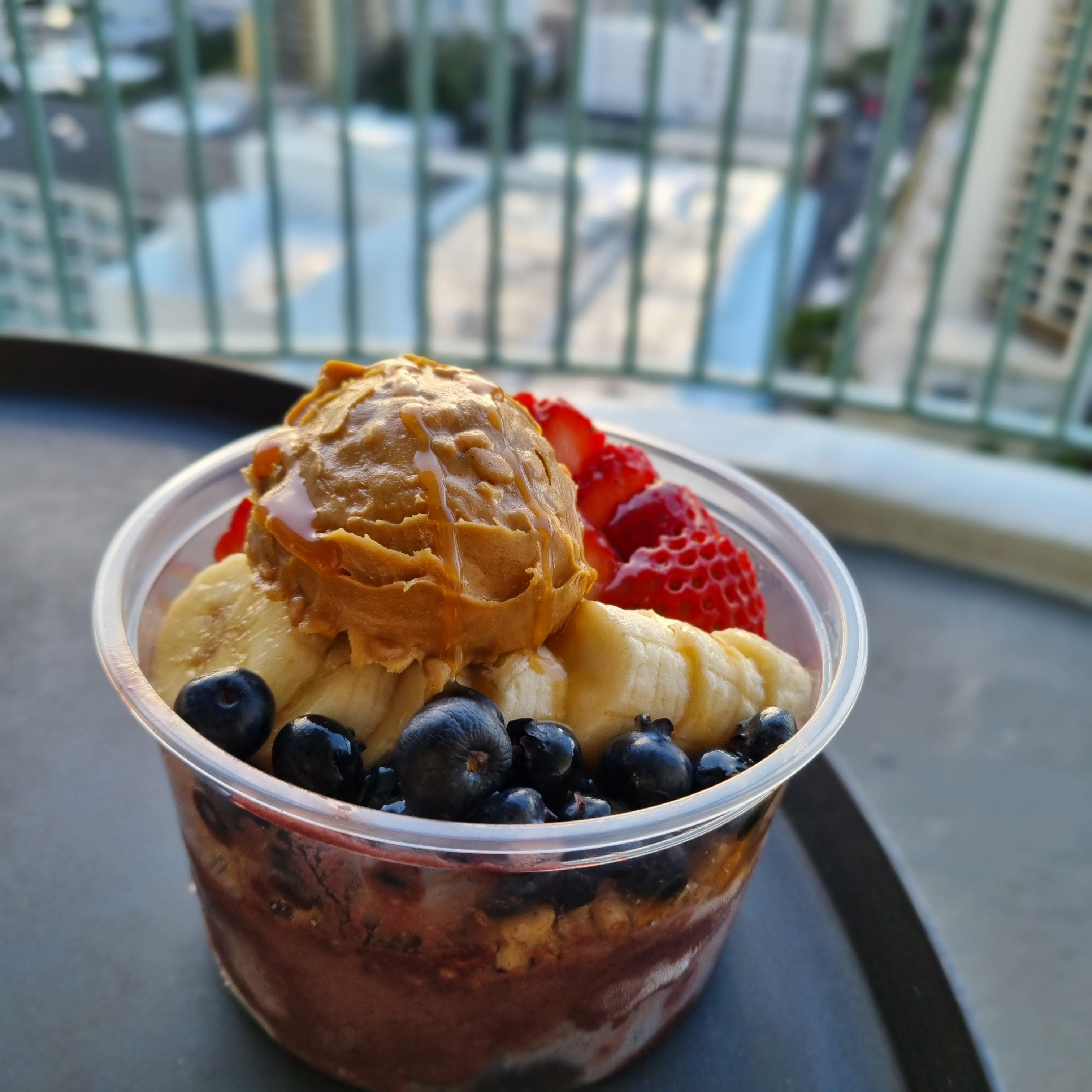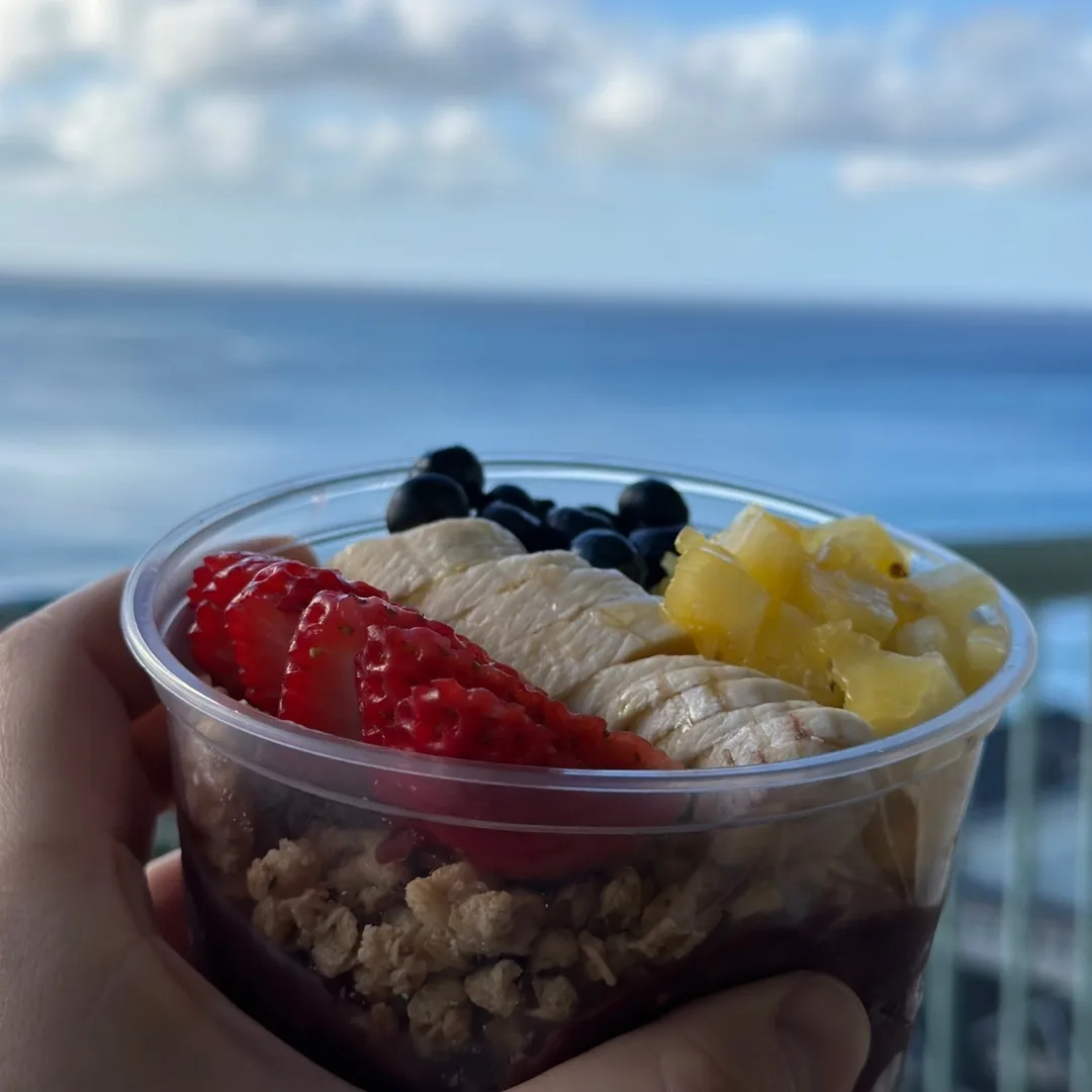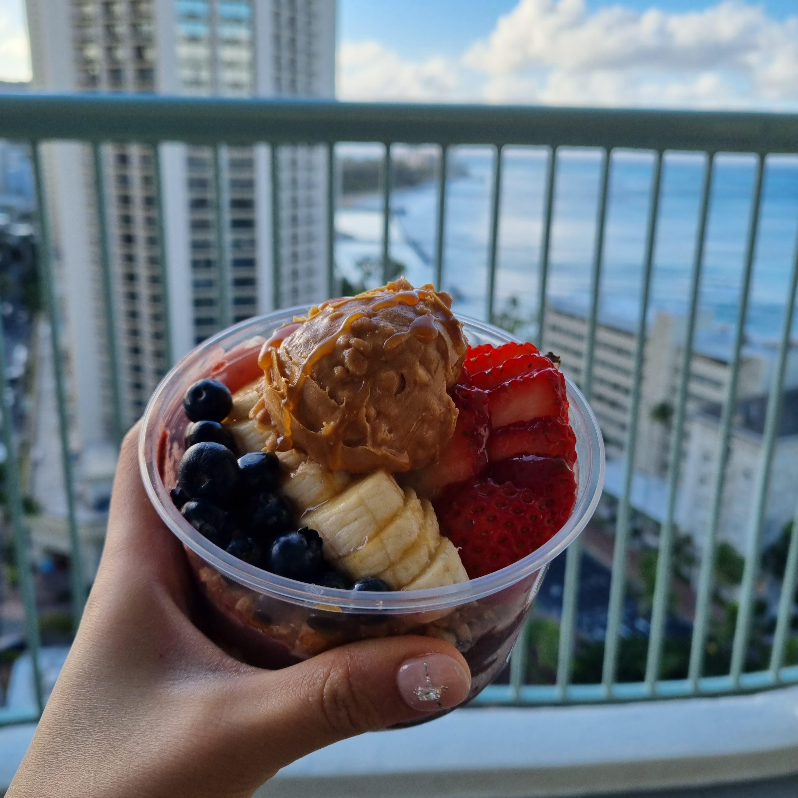 나는 하와이에 갔을 때 아사이볼을 처음 먹었다.