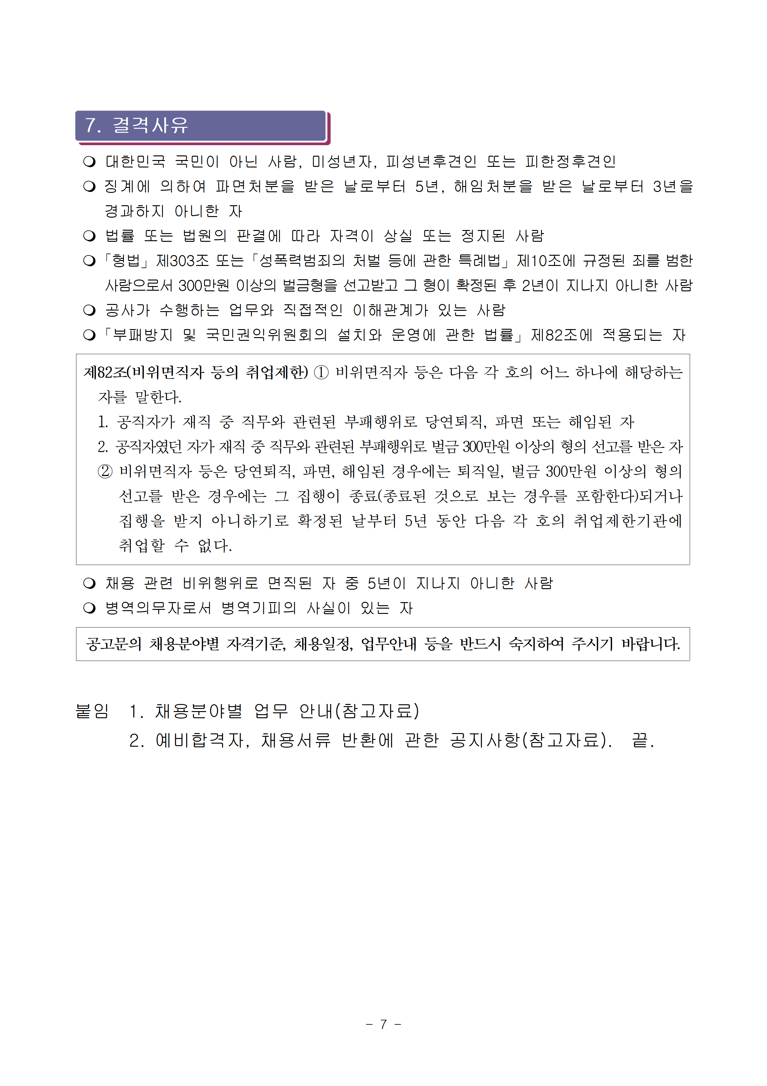 직업 설명 및 부록