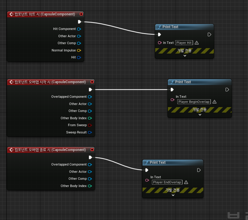 위에서 추가한 이벤트는 충돌이 겹치거나 충돌할 때 발생합니다.